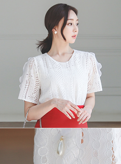 ラウンドネック 小売ラッフル 真珠 レイス ブラウス