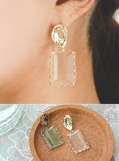 クリア スクエアゴールドイヤリング