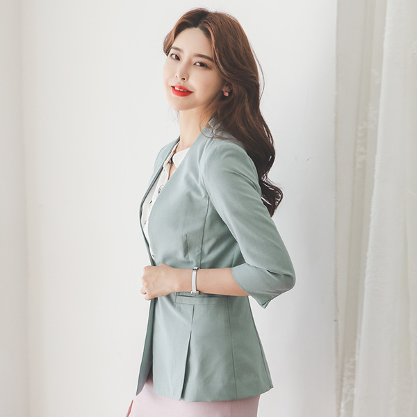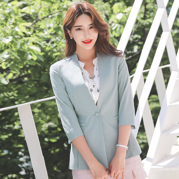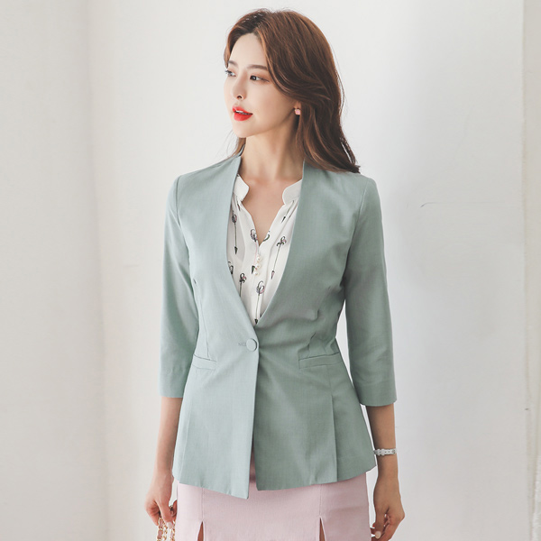立领 スリム ワンボタン ノーカラー ジャケット