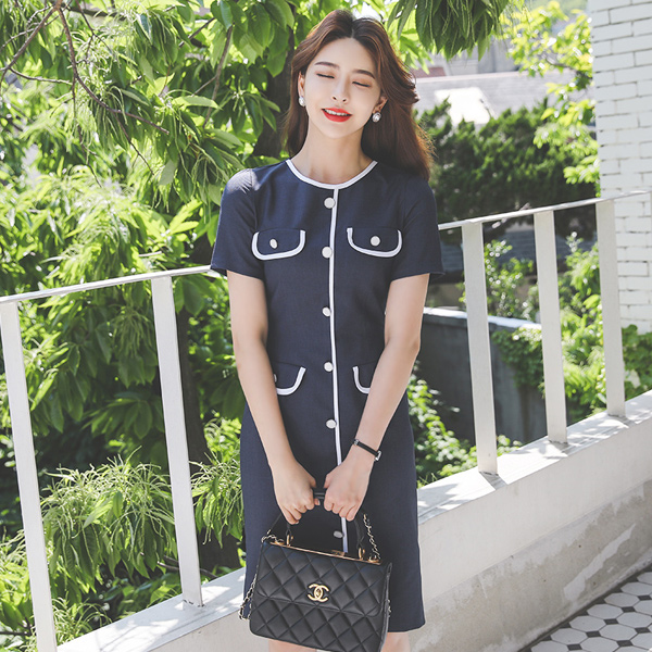 バイアス ポケット ボタンライン 弾力 ワンピース
