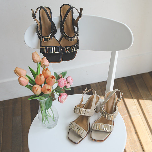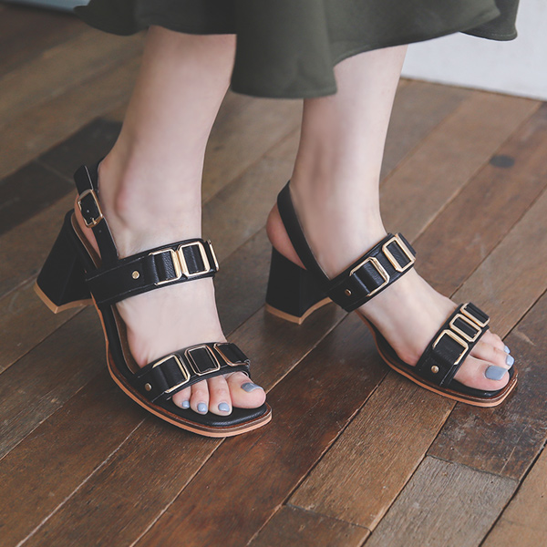 ダブルクォーツ スクエア ストラップ サンダルヒール