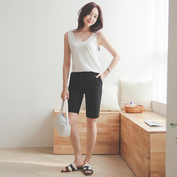 シンプル ストレート 弾力 5分 リンネンパンツ
