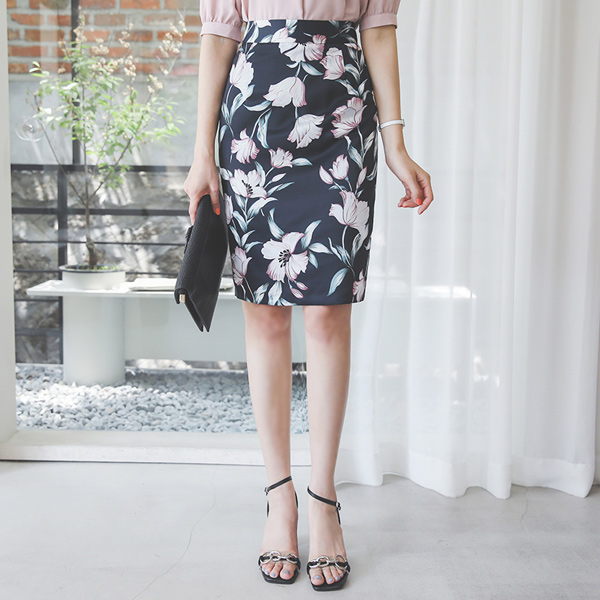 シルキー 花柄 Hライン スカート
