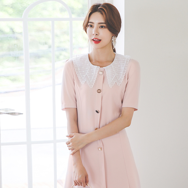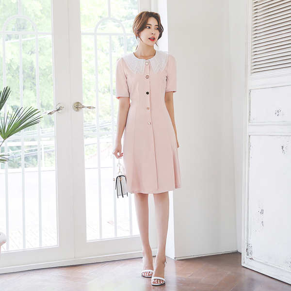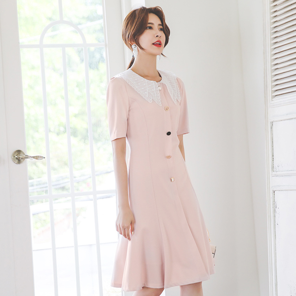 刺繍 フラットカラー マルチ ジュエリー Aライン ワンピース