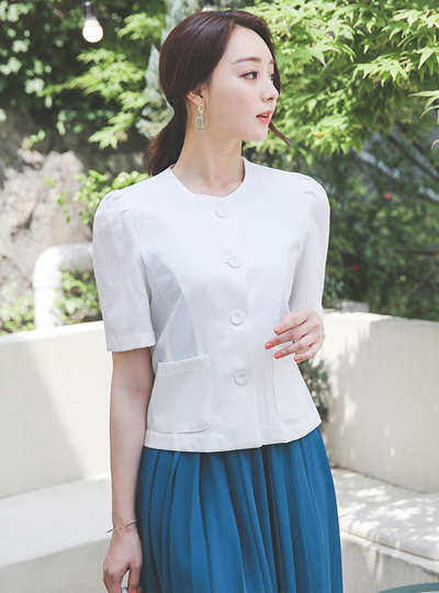 パフ袖 ポケット ラウンド リネン ジャケット