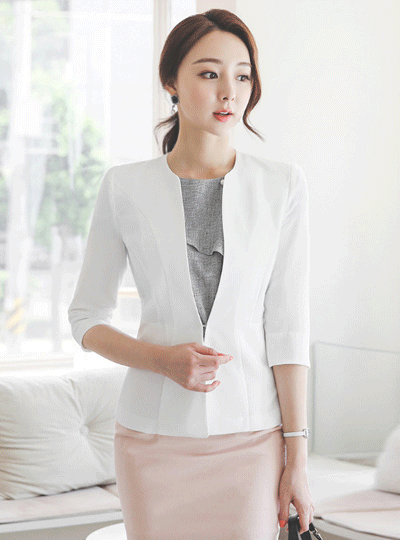 ミニマル スリム ラウンド ノーカラー ジャケット