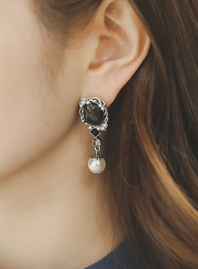 アンティークブラックストーン真珠イヤリング