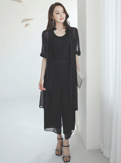 シースルー シフォン ローブ チャイナ 롱셔츠
