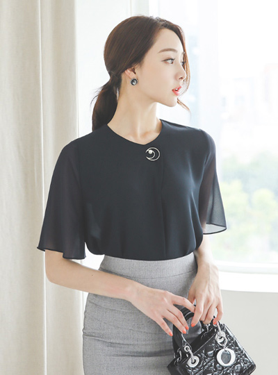クレセント ピンタックライン パピヨンスリープ ブラウス