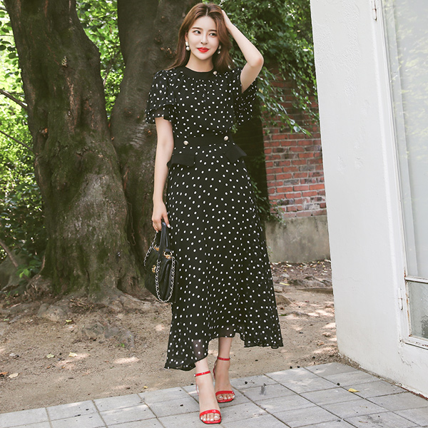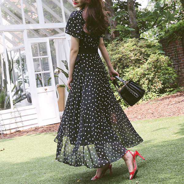 ゴールドボタン ポケット シフォン トット ロングワンピース(夏)