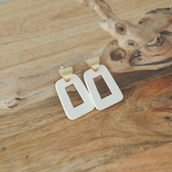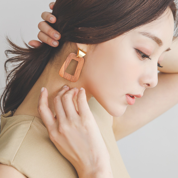 ウッド スクエア輪 ドロップ イヤリング