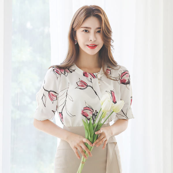 チューリップ パフ袖 ブローチ ブラウス
