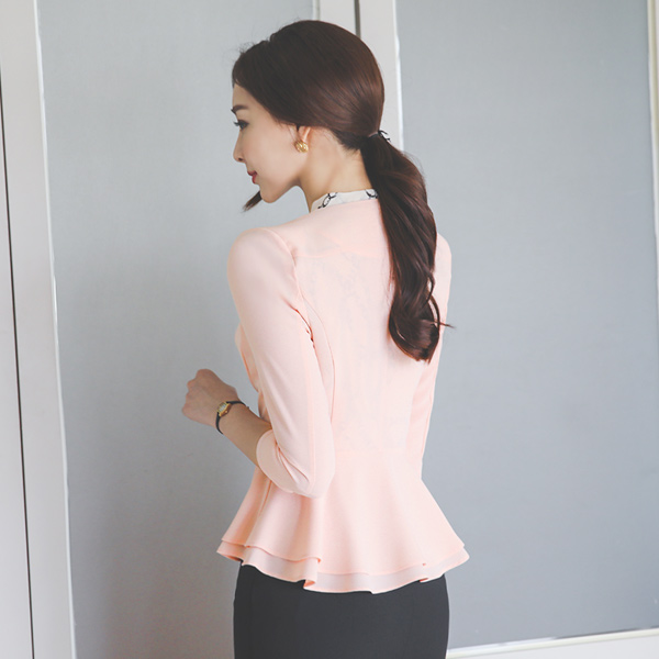 ゴールドわ 鎖捺染 ピンタック ブイネック ブラウス