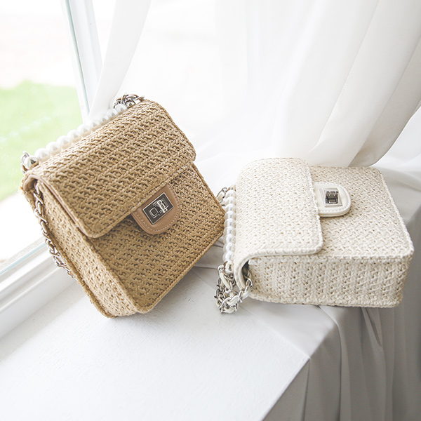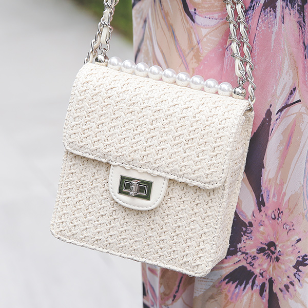 ラタン 真珠 チェーン トートバッグ