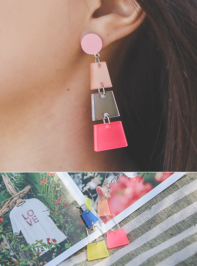 透明 カラードロップ イヤリング