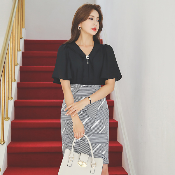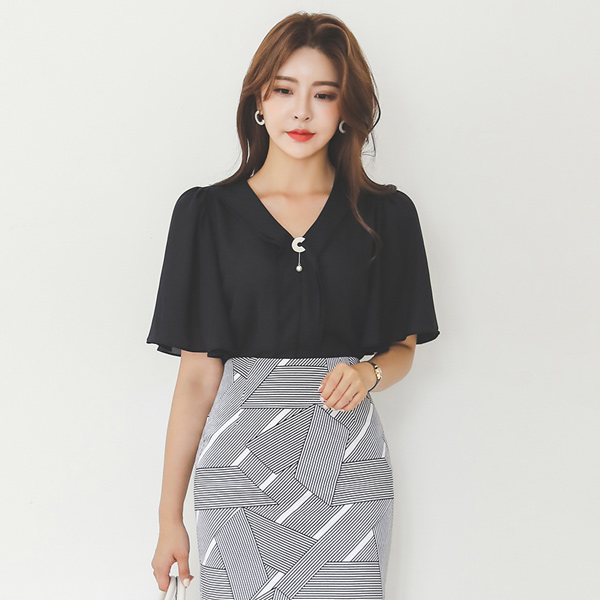 二重 V カラー パピヨンスリープ ブラウス