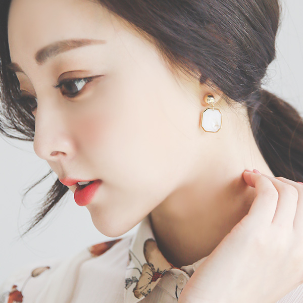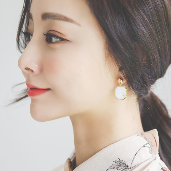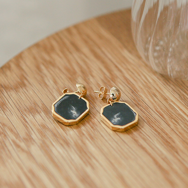 マーブル オクタゴンゴールドイヤリング