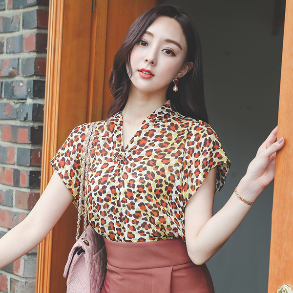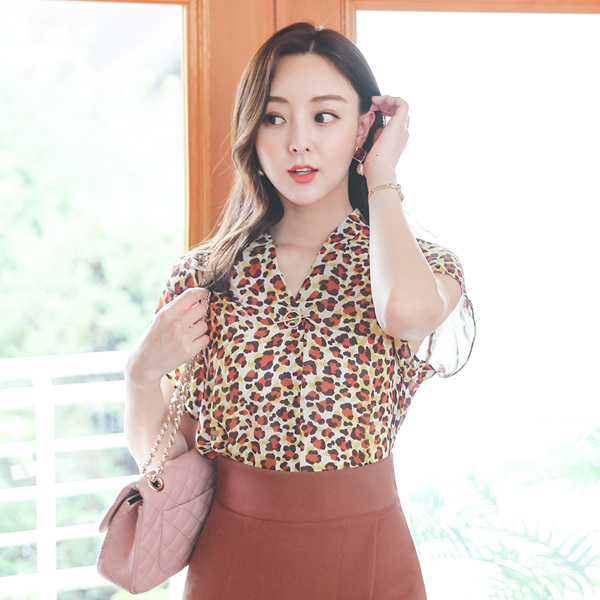 レオパード ゴールドわ ブイネック ブラウス