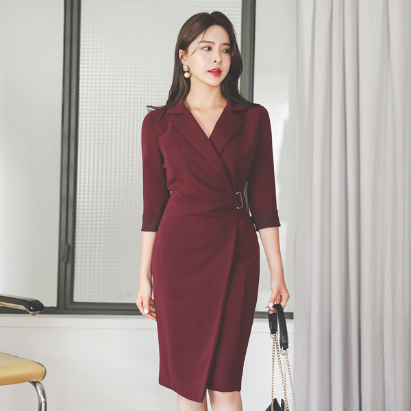 ブイネック バックル ラップ シャーリング ムード ワンピース