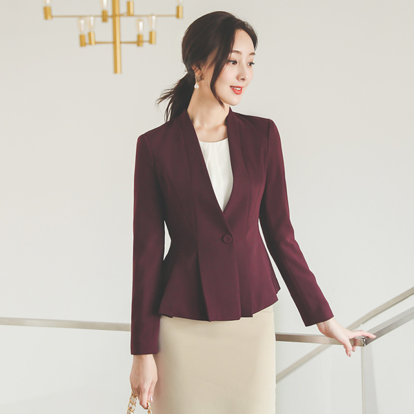ミニマム 切開ライン フレア ノーカラー ジャケット