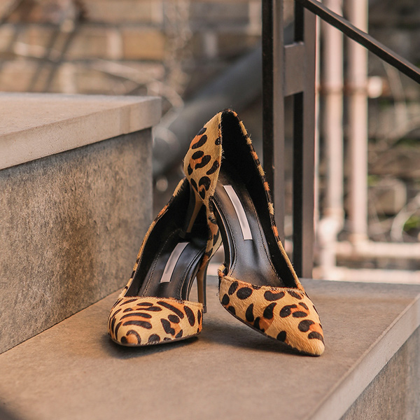 トレンディー レザー レオパード スティレットヒール
