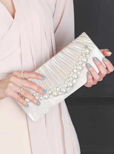 リンクル 真珠&キュービック 繻子 クラッチバック