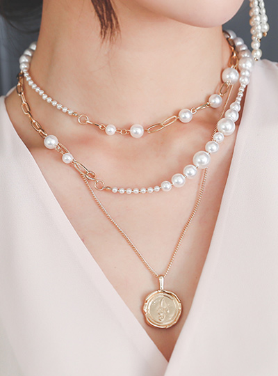 真珠&コイン レイヤード ゴールド ネックレス(2set)