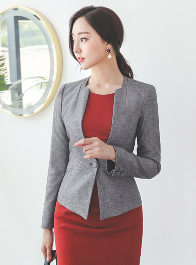 スクエア ノーカラー 袖配色 弾力 ジャケット