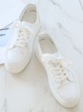ホワイト シンプル プラットフォームソール スニーカー