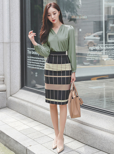 モダン シャーリング ブイネック ブラウス Ⅱ
