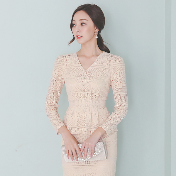 ロマンチック 刺繍 レイス ペプラム 真珠 ブラウス