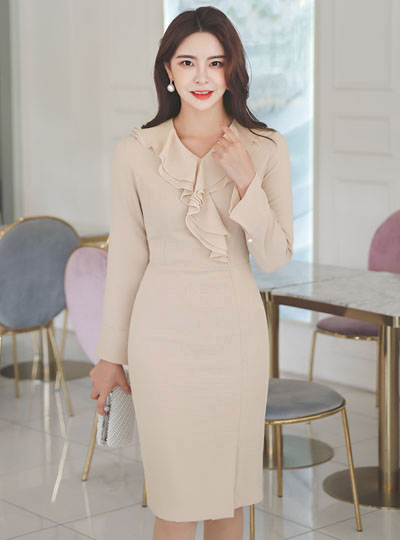 二重 ラッフルライン ワイド カフス ワンピース