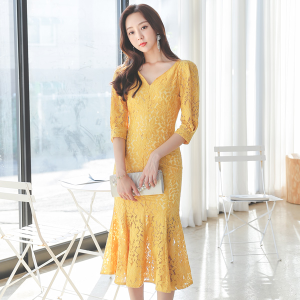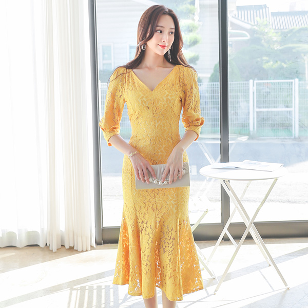ハートネック レイス マーメイド ワンピース