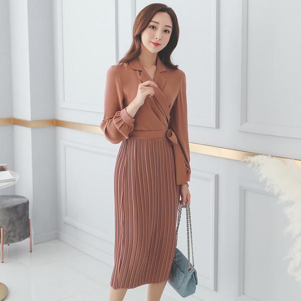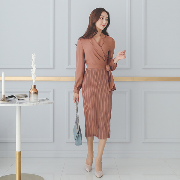 ラップスタイル ピンタック プリーツ スリム ワンピース