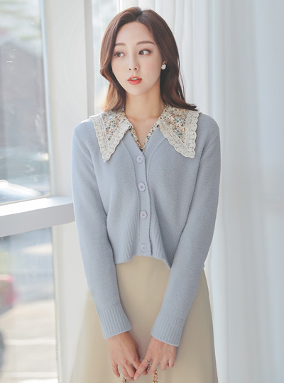 パステルサラサラがブイネックニットショットカーディガン