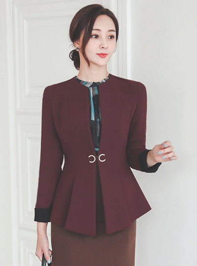 クレセント プリーツ ペプラム 袖配色 弾力 ジャケット