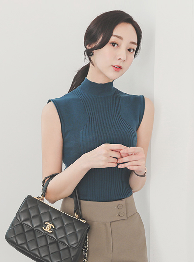 セミハイネック グラム袖なし スリム ニット
