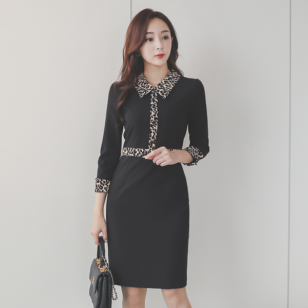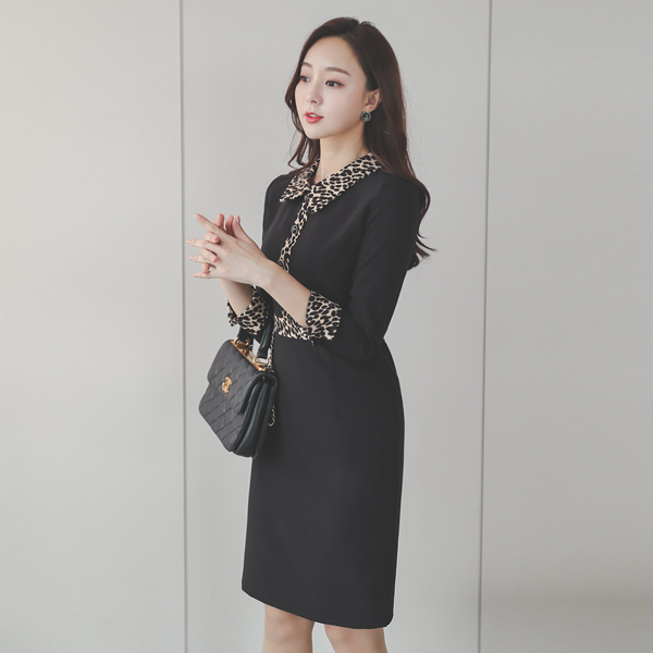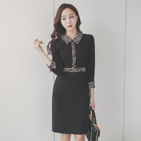 Leopard 配色 襟シャツ ワンピース