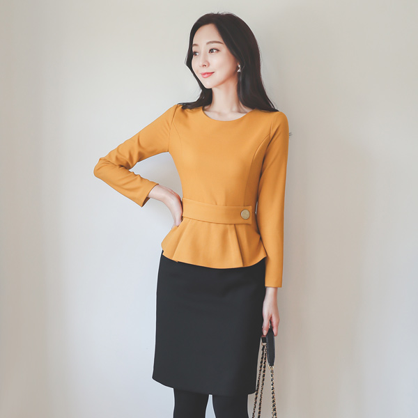 ビッグボタン バンド ペプラム ワンピース Ⅱ