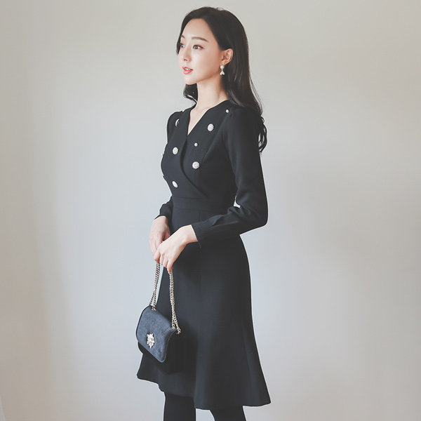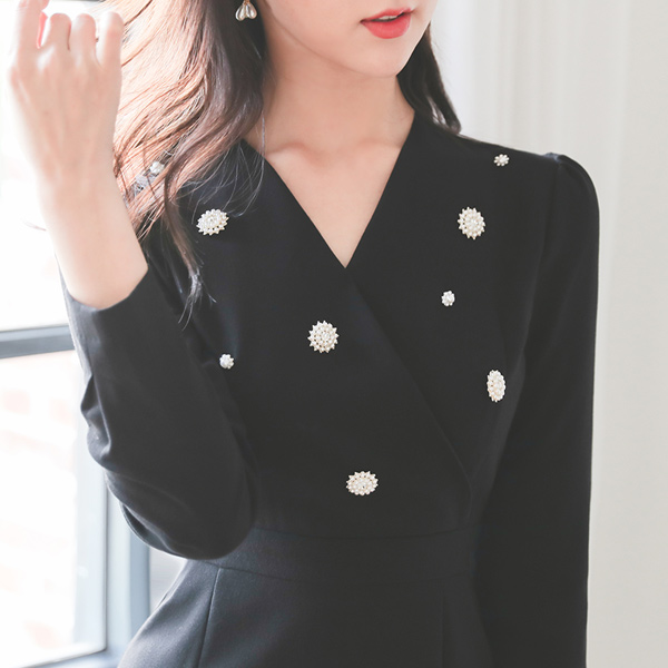 真珠 花柄 ゴアード Aライン ワンピース