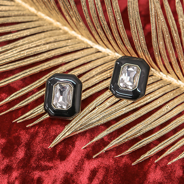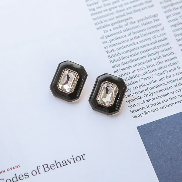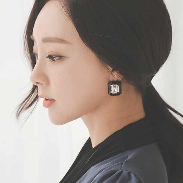 ブラックラウンド キュービック イヤリング
