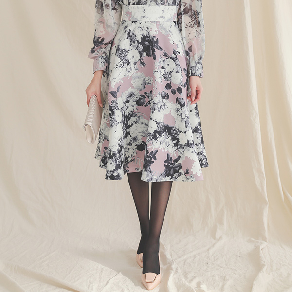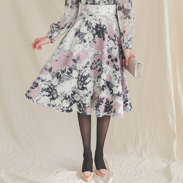 ロマンチック 花柄 パタン フレア スカート