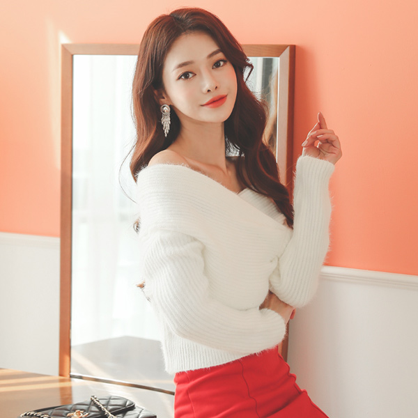 フェミニン シャーリングラップ オフショルダーニット Ⅱ