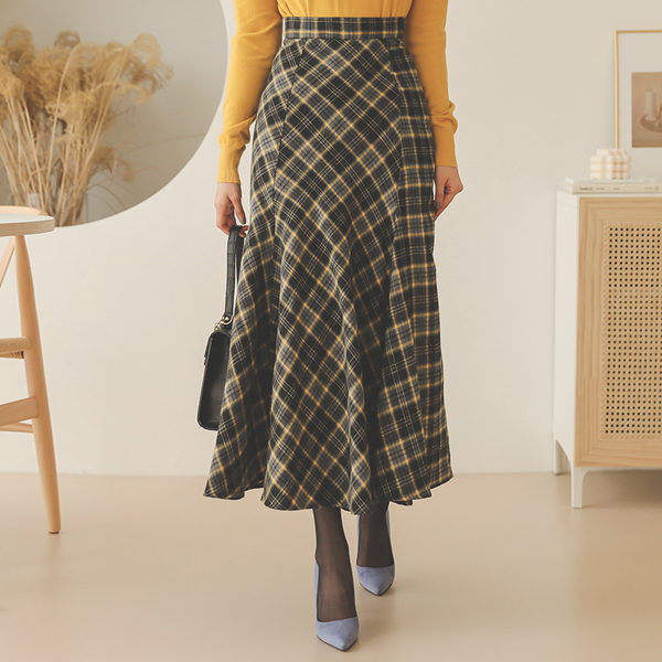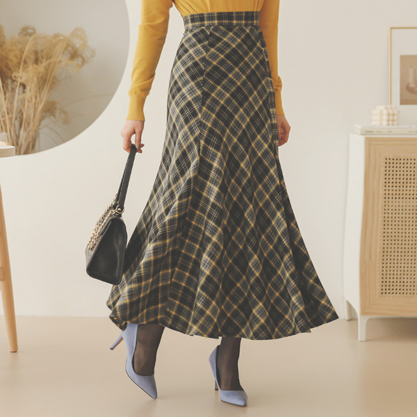 ウインター チェックパターン 起毛 フリル ロングスカート