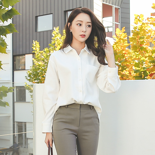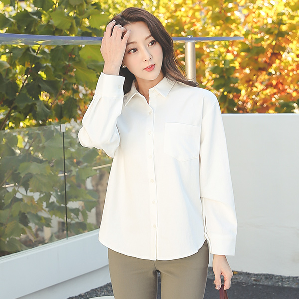 ベーシック Peach 起毛 ワンポケット コットン シャツ