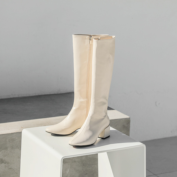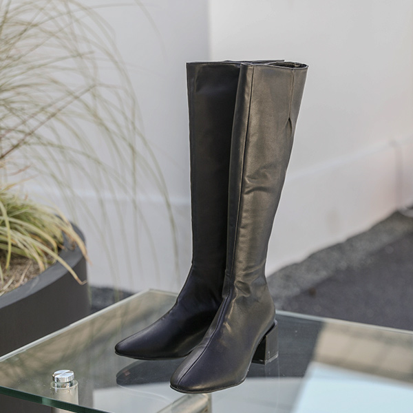 レザー ブロックヒール ロング ブーツ