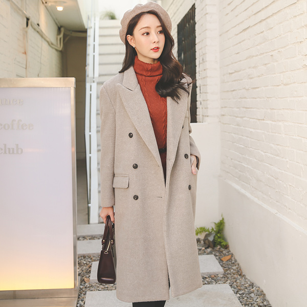 モダン バクシー ウール混紡 ダブル ロングコート