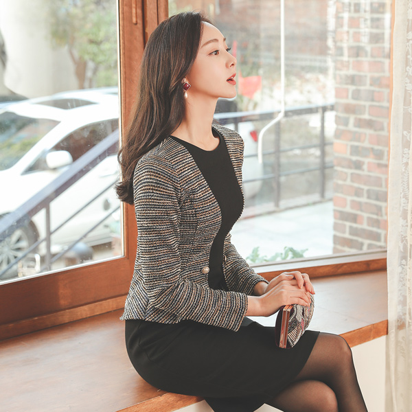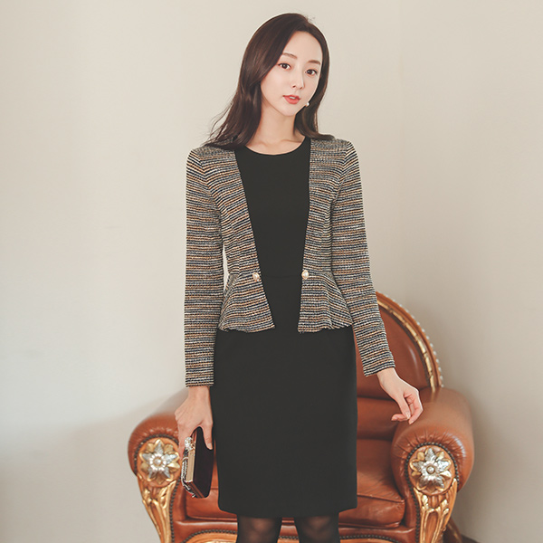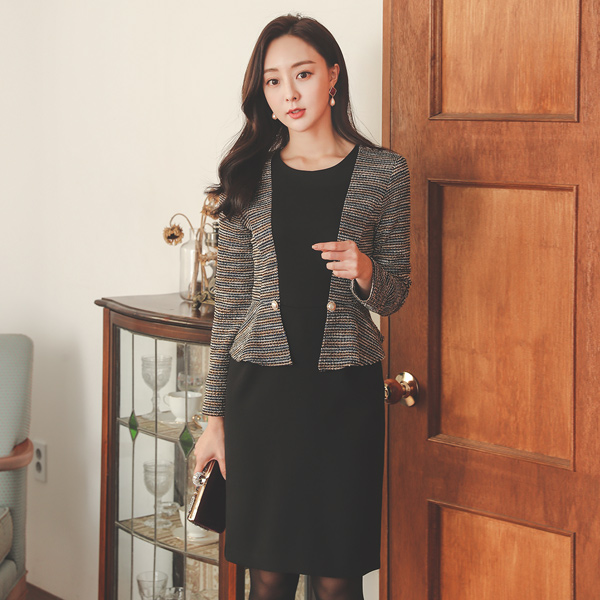 ツイード 配色 真珠 ペプラム ワンピース