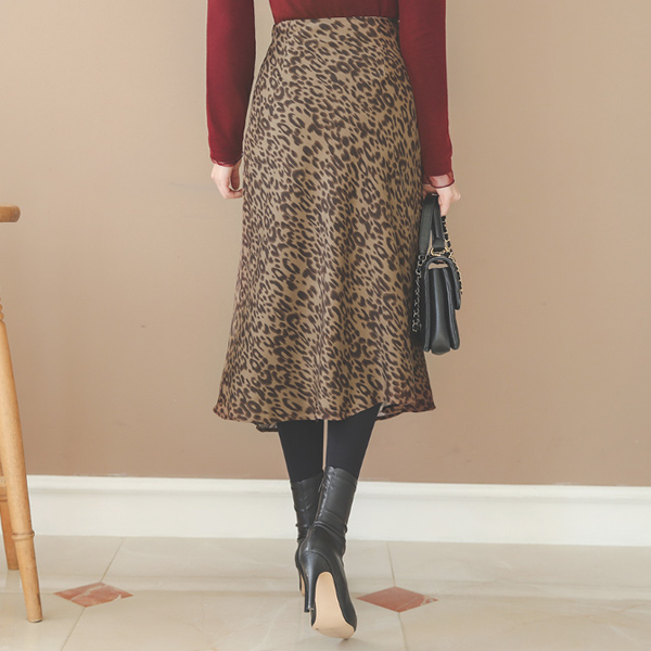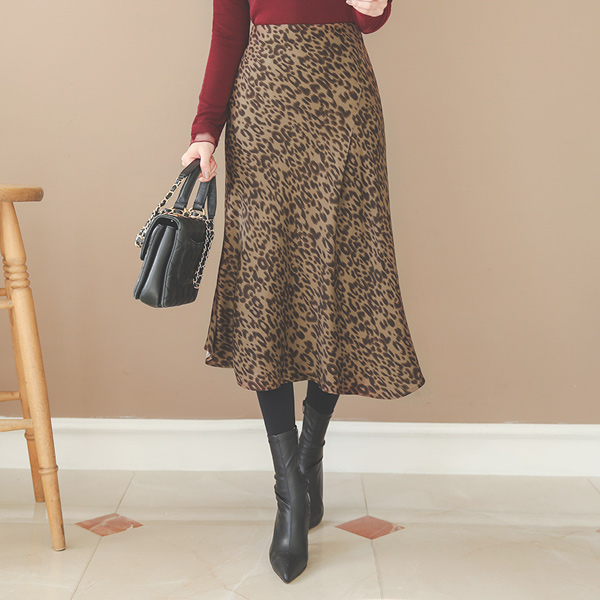 シルキー Leopard 切開 フレア スカート