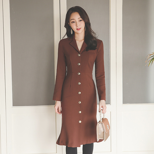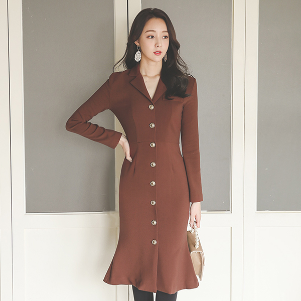 ロイヤル ゴールドボタン マーメイド カラー ワンピース